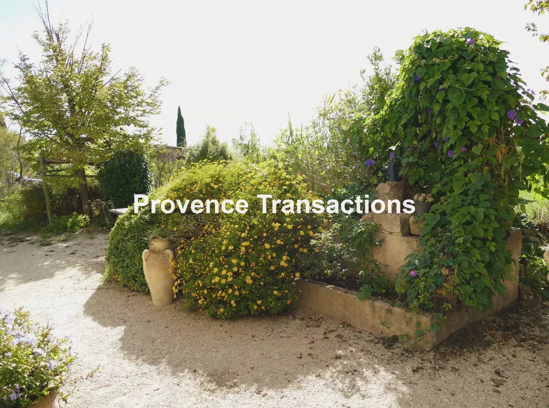 Grand terrain d'environ 1.8ha sans aucun vis-à-vis, arboré, verger d’oliviers (350 pieds), pommiers, abricotiers, vignes.